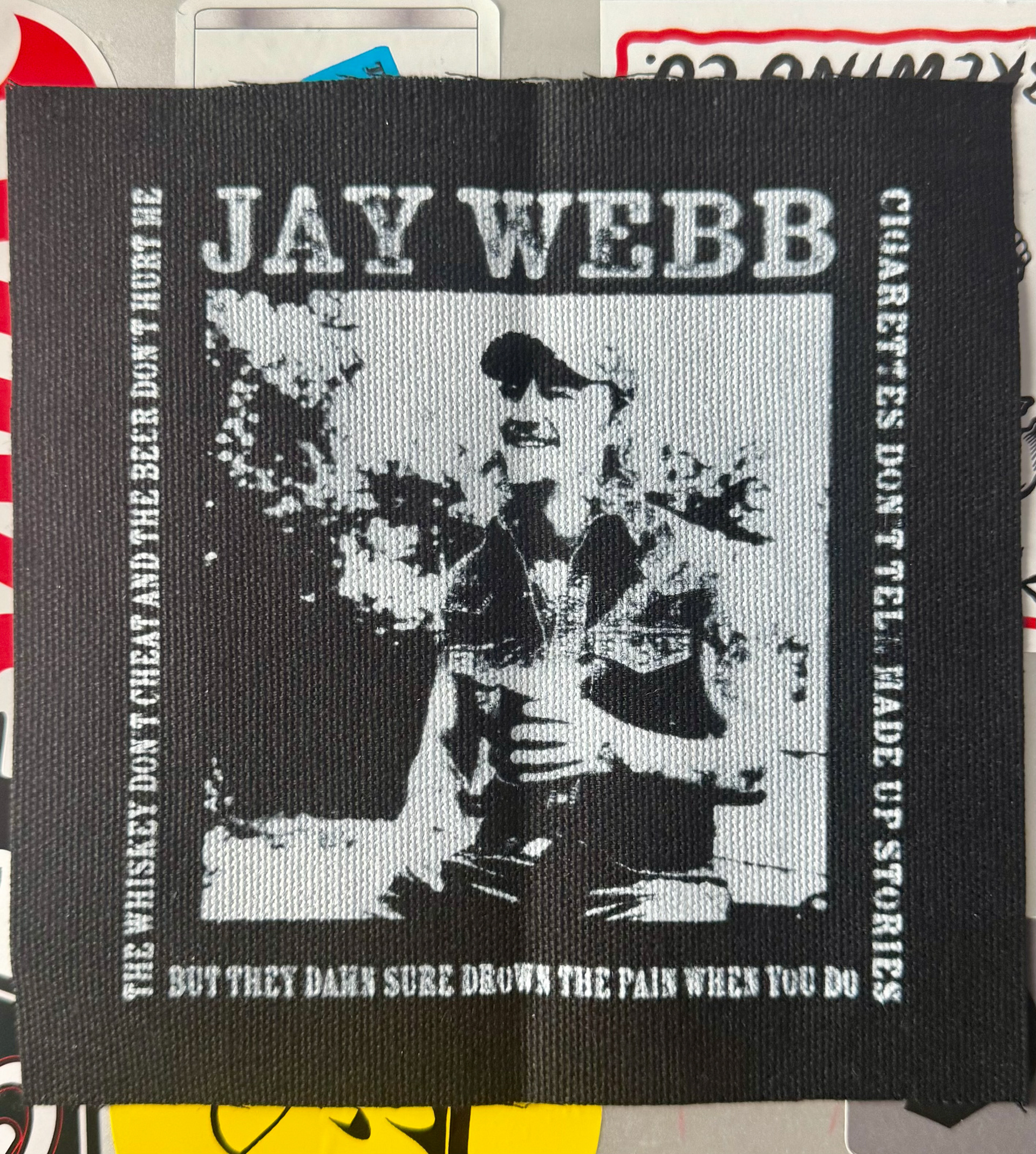This is a personal project executed in November of 2025 for an upcoming country concert. I just thought a country artist deserved a cool looking patch to be slapped on to clothing so I took a photo found on the internet of the artist (Jay Webb) and mocked up this punk-rock inspired patch and then had it printed on Etsy. I also have a backpatch using the same design.